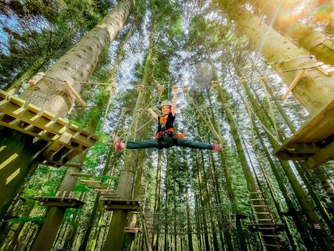 Mega Freizeit Spaß. Toller Seilgarten in den Bäumen installiert. Riesen Doppel Seilbahn und an jedem Parcours Ende auch eine. Klasse 👍